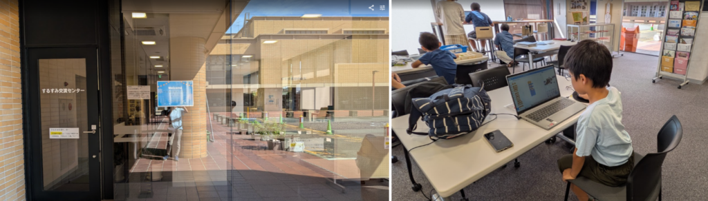 4月に新しくできた「するすみ交流センター」で開催しました。フリーWifi完備の会場で、自由に使えるオープンスペースです。今日は隣でコミュニティーの会合をやっていました。