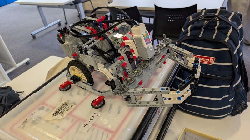 大会用のLEGOロボットも持ってきてくれました。ロボットも新しい仲間ができて一緒にロボット作りをしているそうで、知恵を出し合ってがんばってくださいね
